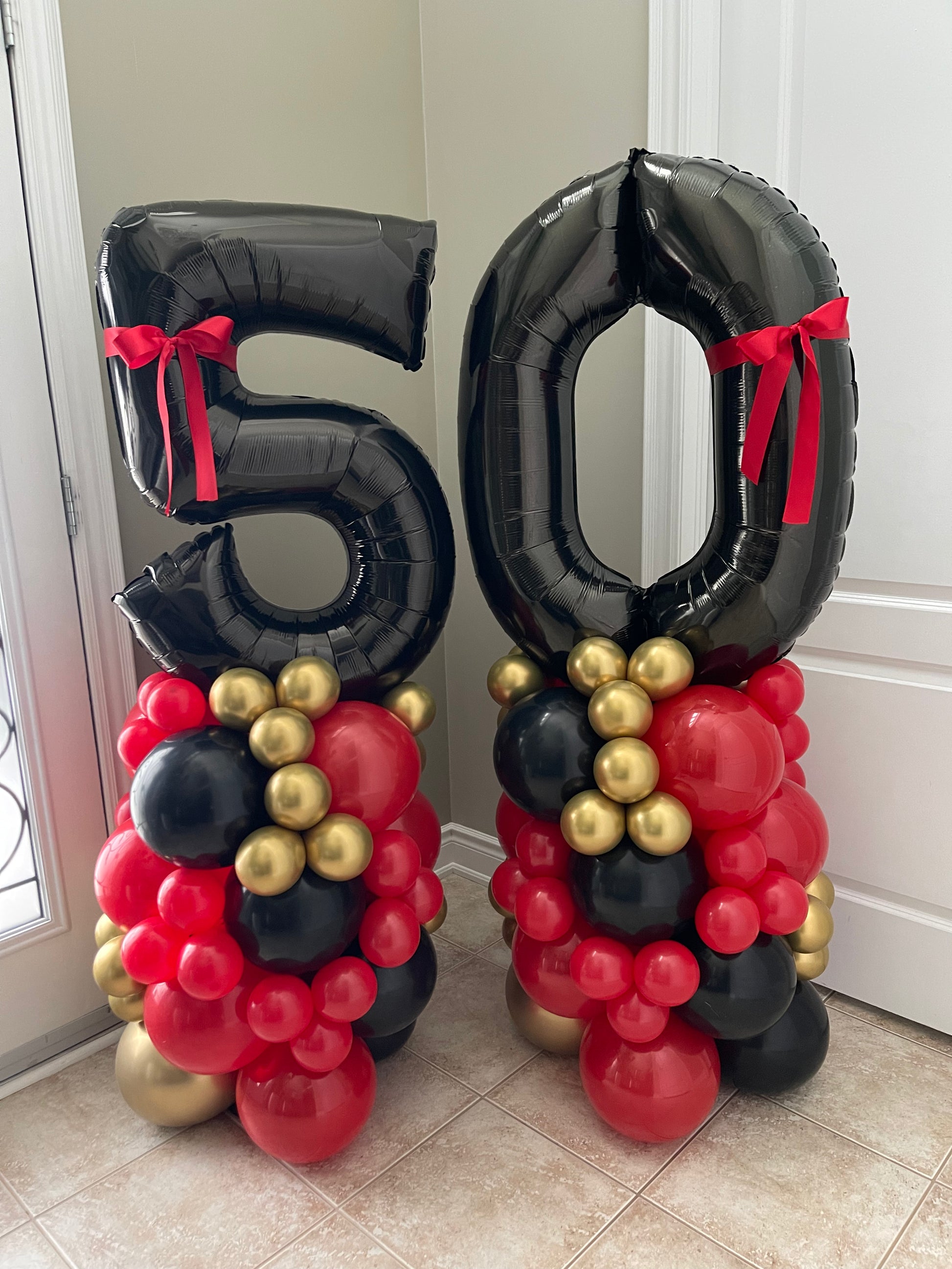 Make any birthday or milestone extra special with our custom number balloon stacks! Standing at 34” tall, our foil number balloons are paired with coordinating latex balloons in any color and theme to match your celebration.