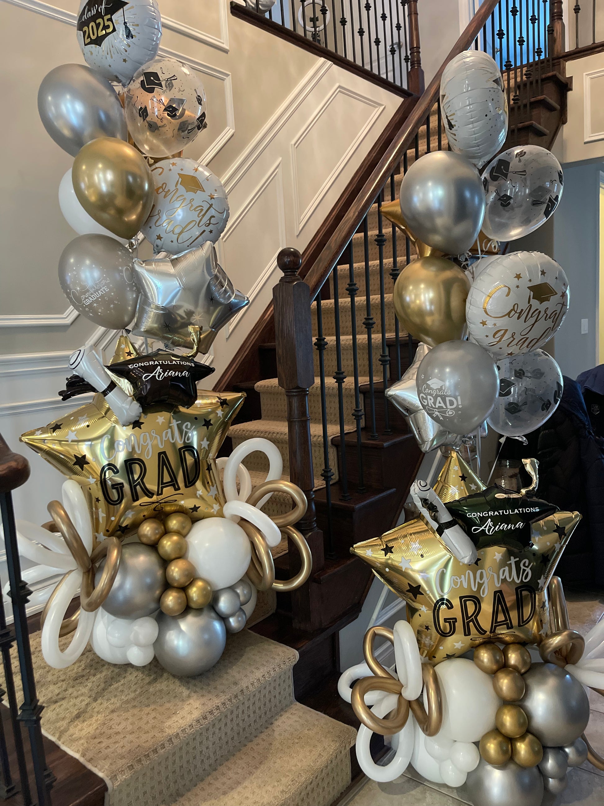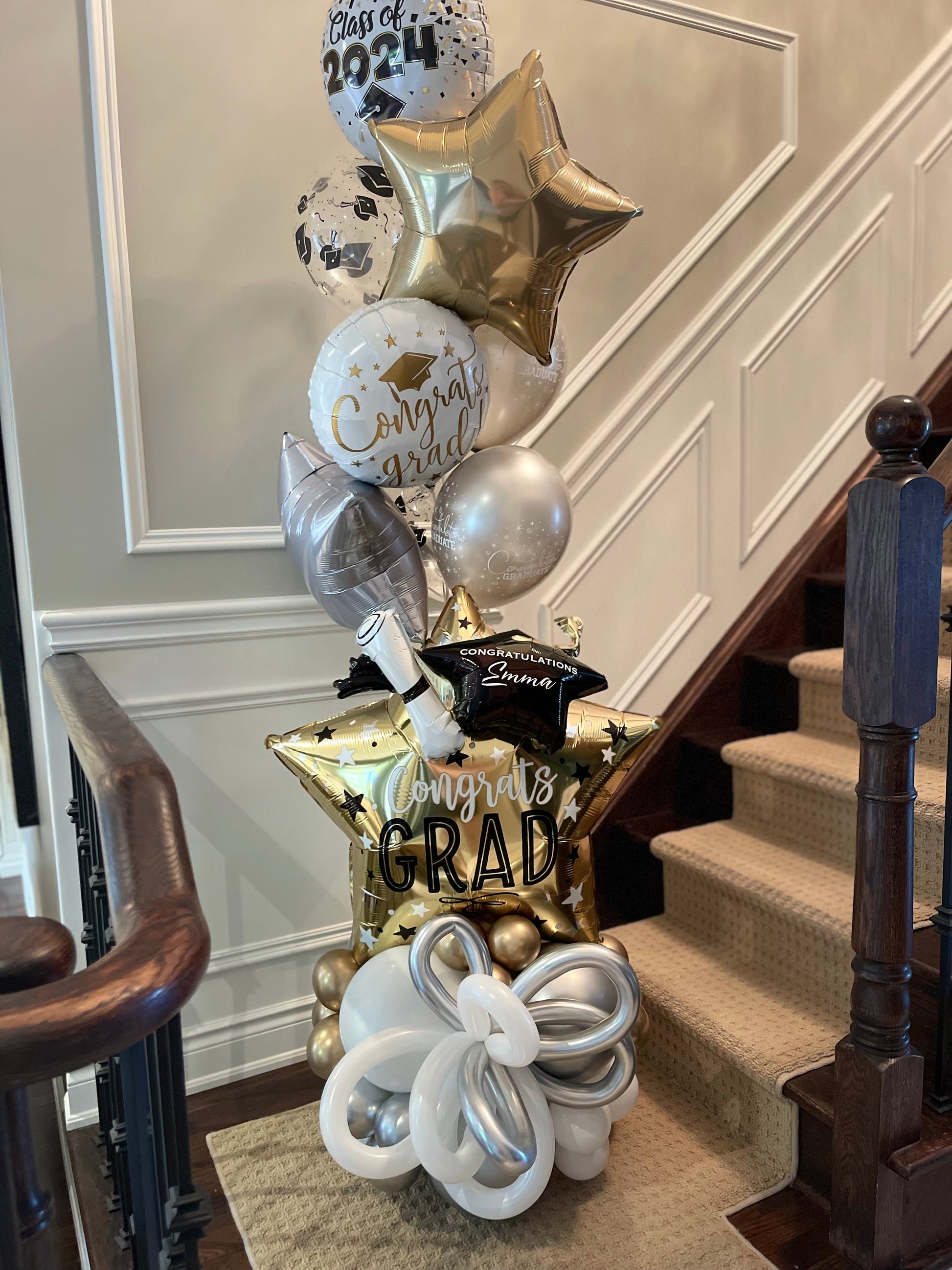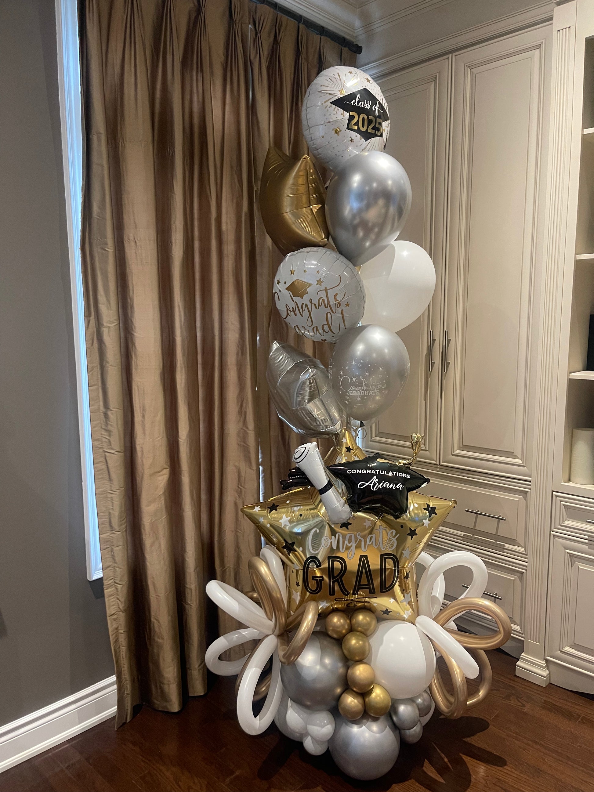 Make their graduation day unforgettable with our stunning Graduation Balloon Arrangement. This eye-catching display is the perfect way to honour their hard work and celebrate this milestone moment.